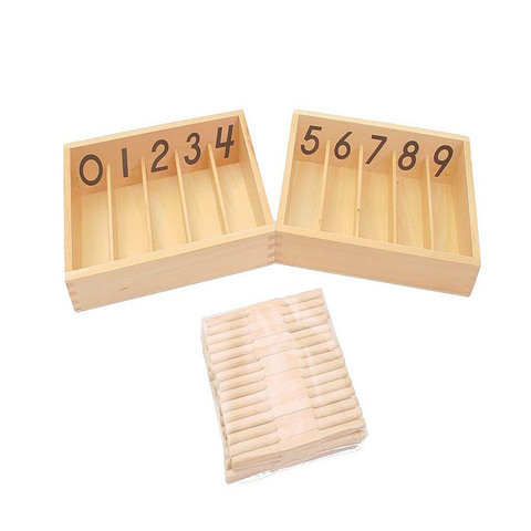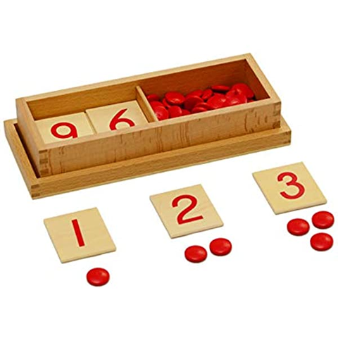 Montessori การ์ดเคาน์เตอร์กล่องไม้หมายเลข1-10เคาน์เตอร์สีแดงของเล่นเพื่อการศึกษาก่อนวัยเรียน